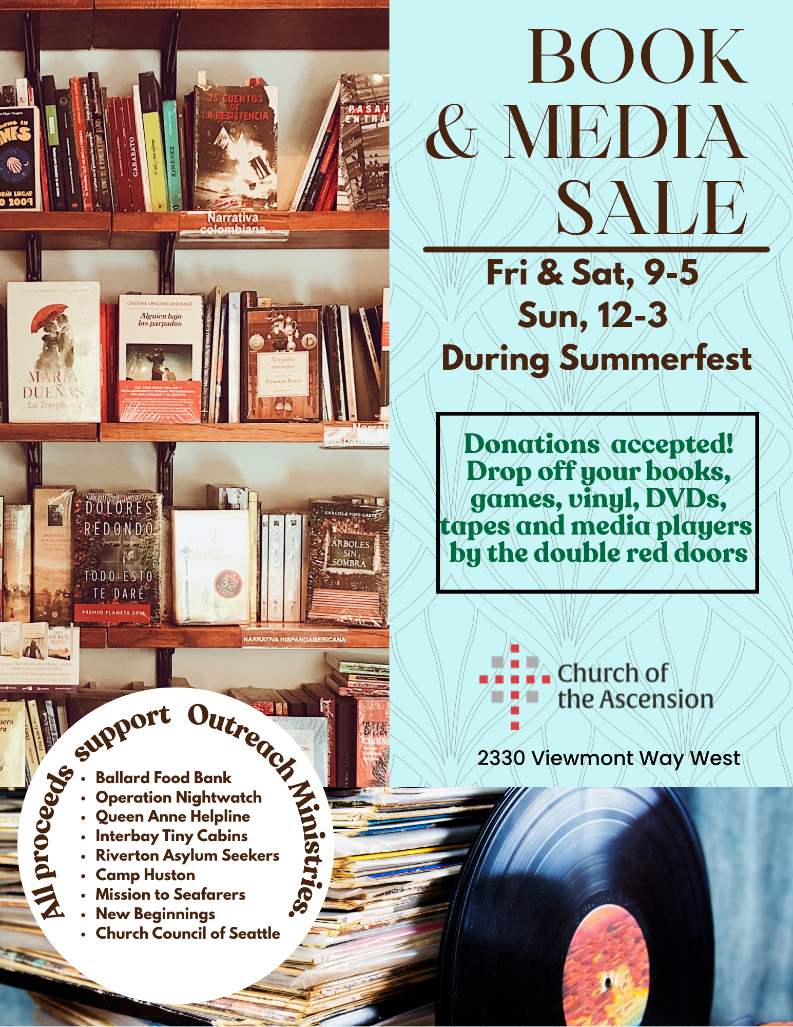 Book & Media Sale: Aug 1-3, from 9-5 Fri and Sat, 12-3 Sun. Book and media donations are being accepted now! Drop off donations by the red doors under the […]